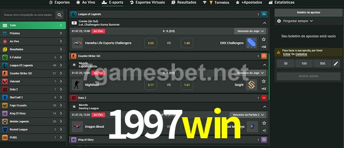 A aposta 1997win oferece aos jogadores a experiência mais conveniente de apostas em eSports!